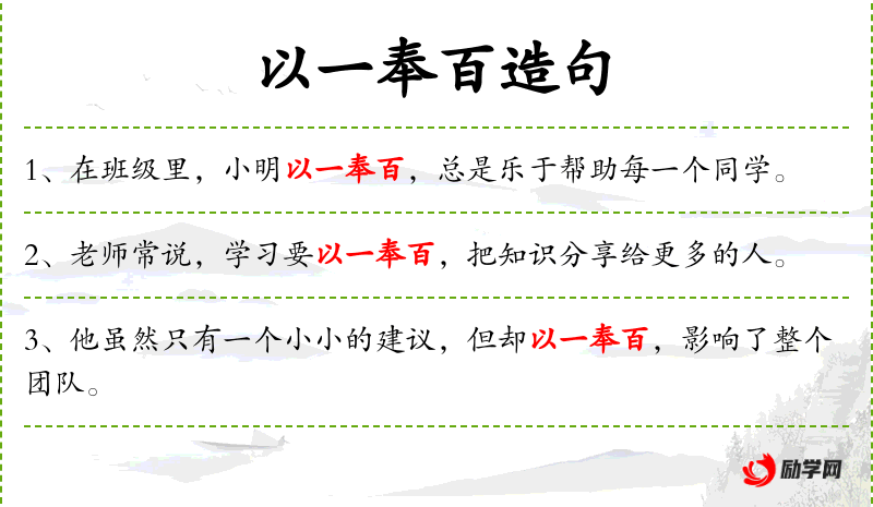 - 以一奉百:成语,意为以少数人的努力带动多数人,形成集体的力量。
