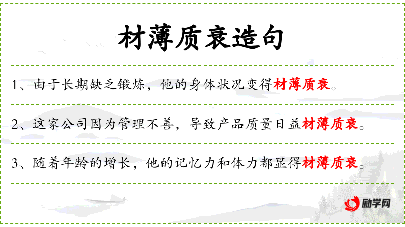 5. 【材薄质衰】 - 指才情资质薄弱。有时用为谦词。
