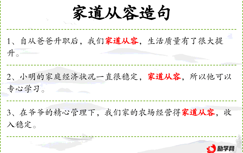 - “家道从容”反映了**传统文化中对家庭和谐与经济稳定的重视。