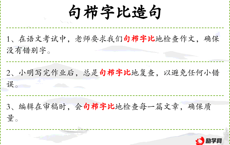 - 句栉字比:形容校对时非常细致,逐字逐句地检查。