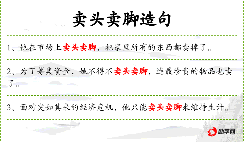 这个句子中的“卖头卖脚”是一个比喻,源自**传统文化中对于极端牺牲的描述。它反映了在某些情况下,人们可能会为了更大的利益或目标而做出极端的选择。