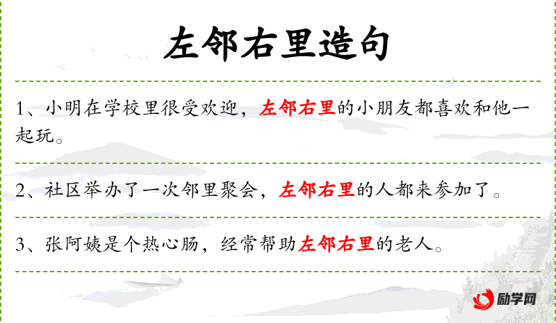 - 宾语:左邻右里的朋友