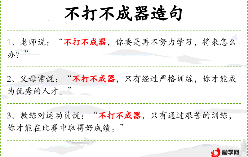 - 不打不成器:这是一个成语,意思是如果不经过严厉的管教,孩子就无法成才。