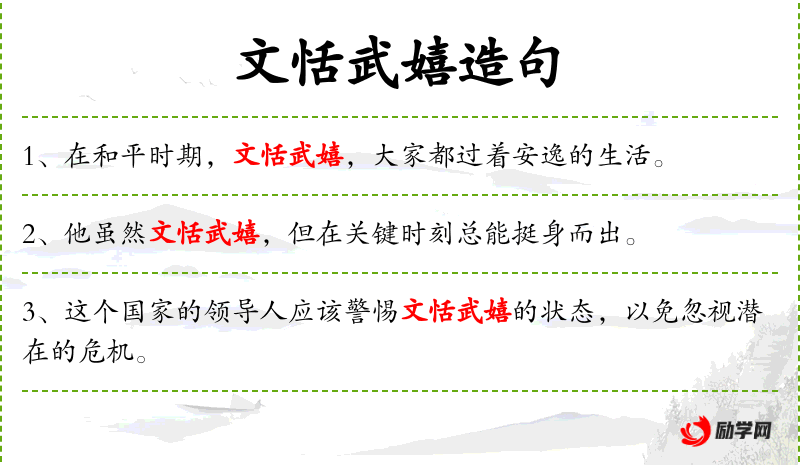 - 领导层不应因文恬武嬉而降低对工作的要求。