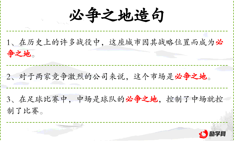 - 相关成语:“必争之地”在其他领域也有应用,如商业竞争中的关键市场。