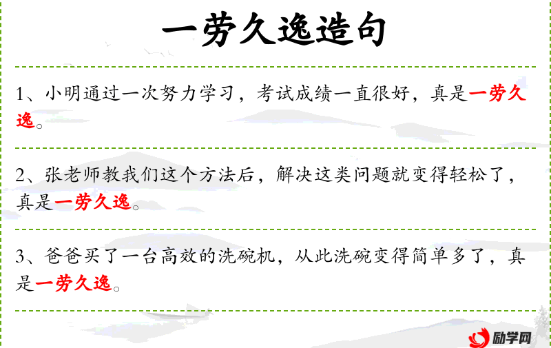 一劳久逸是一个成语,强调长期效益。这个成语在文化中常用来鼓励人们通过一次性的努力获得长期的收益。