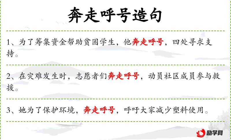 - 谓语:奔走呼号,争取