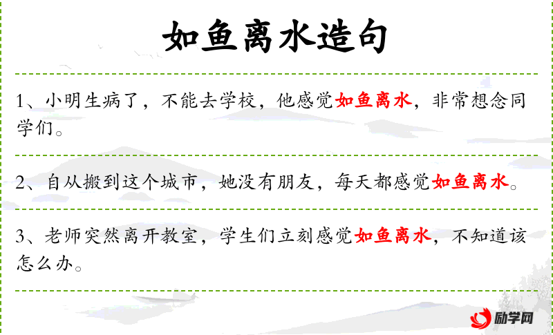 - 如鱼离水:这个成语在文化中常用来说明某人处于不适宜的环境,感到非常不适应。它反映了人对于环境和适应性的重视。