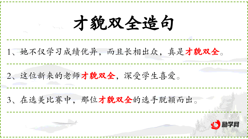 “才貌双全”是**文化中常用的一个成语,强调人的内在才华和外在美貌兼备。这与西方文化中的“beauty and brains”类似。
