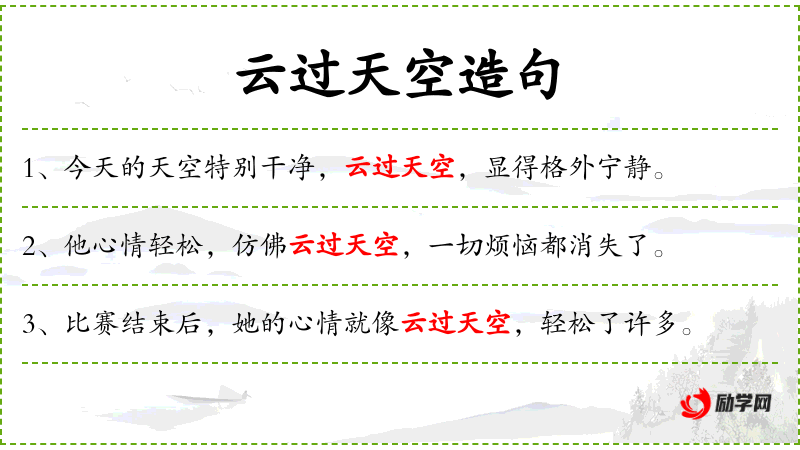 句子中的“云过天空”是一个比喻,常用于中文表达中,用来形容事情过去,心情变得明朗。这个比喻在**文化中常见,与自然现象和人的情感变化相结合。