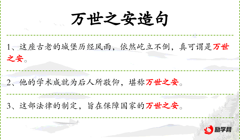 1. 【万世之安】 永久的安定、稳固。