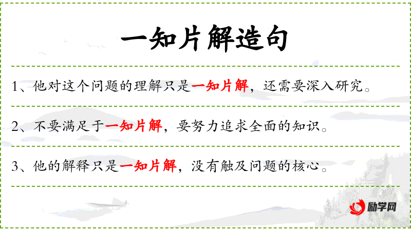 1. 【一知片解】 - 犹一知半见。指不成熟的一点见解。