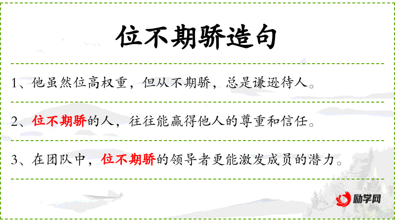 1. 【位不期骄】 指地位高了,就会骄傲。