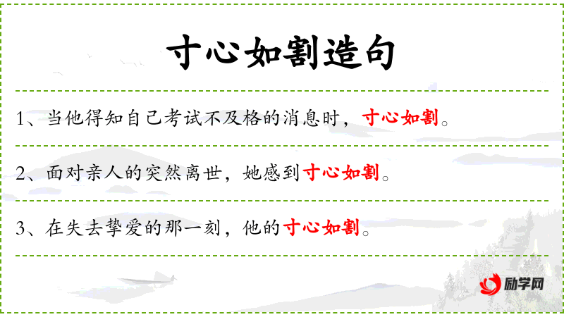 - 寸心如割:成语,形容极度痛苦或悲伤,字面意思是心像被割一样痛。