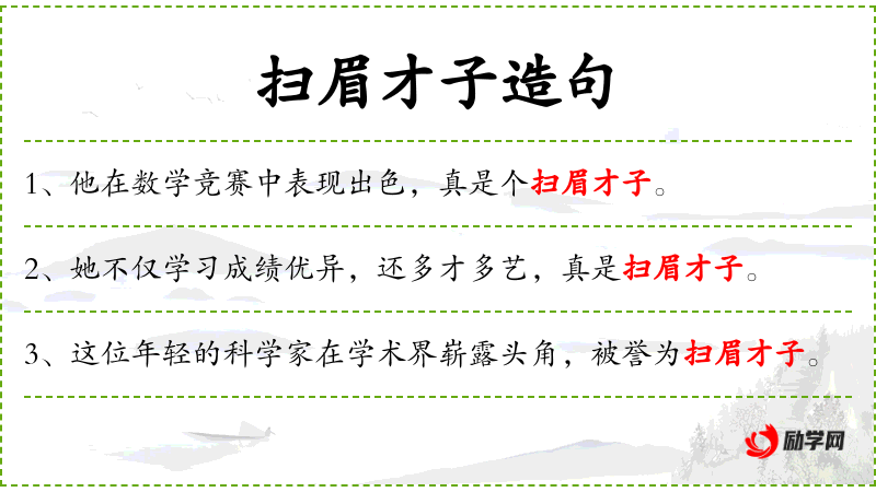 - 宾语:扫眉才子