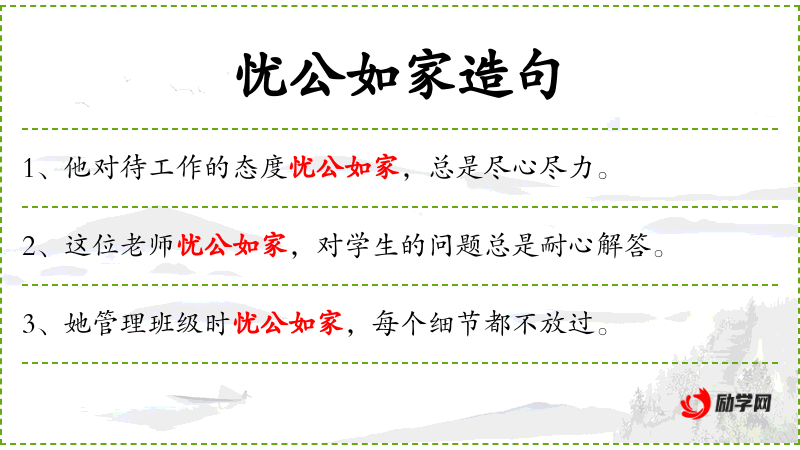 - 忧公如家:这个成语体现了**传统文化中对公私分明的重视,以及对工作责任的强调。
