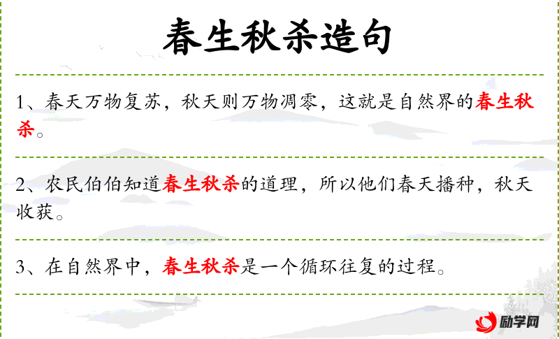 1. 【春生秋杀】 春天万物萌生,秋天万物凋零。