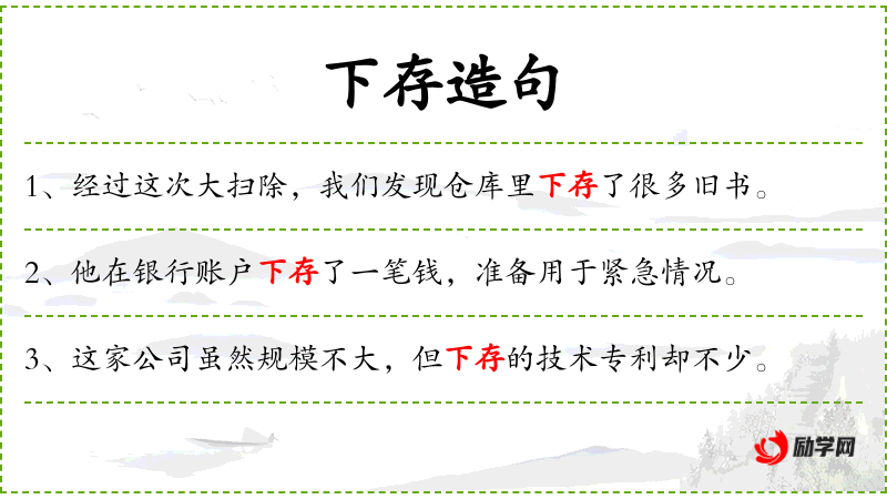 2. 【下存】 支取一部分之后还存若干数目。