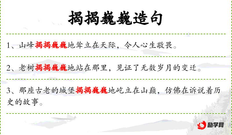 - 揭揭巍巍:形容词,形容演讲的气势宏伟、有力。