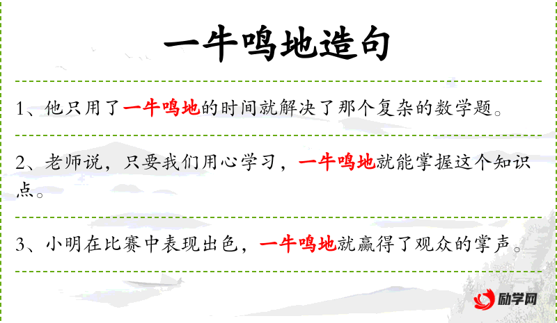 - “一牛鸣地”:这个表达可能是笔误或方言,标准汉语中没有这个表达。可能是想表达“一口气”或“连续不断地”。