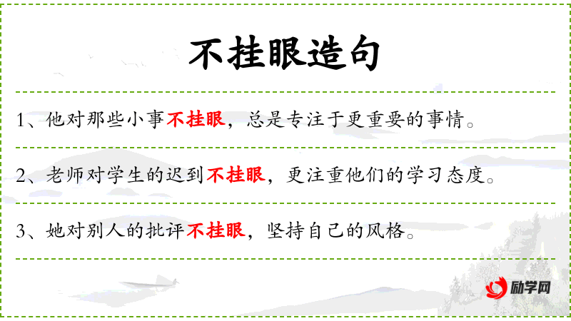 1. 【不挂眼】 - 不看在眼里。