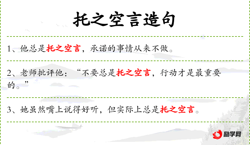 句子中的“托之空言”是一个成语,意指只说不做,空谈。这个成语反映了**文化中对于言行一致的重视。
