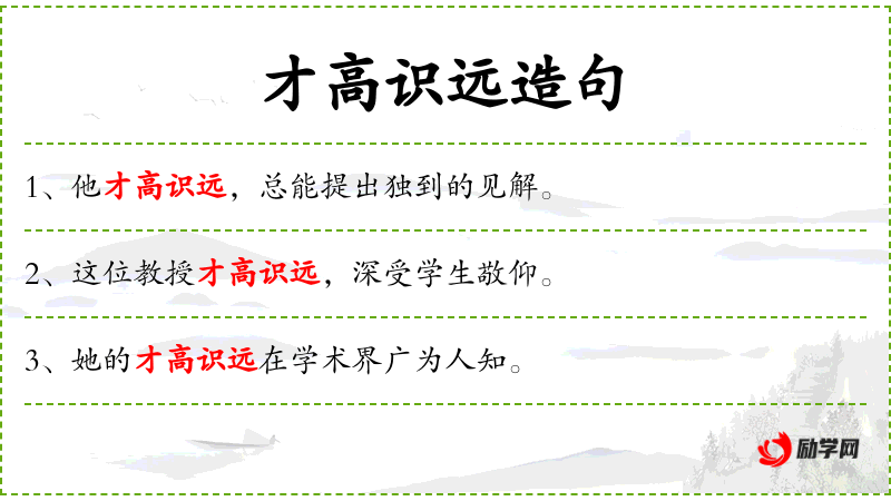 - 才高识远:形容一个人才华横溢,见识广博。