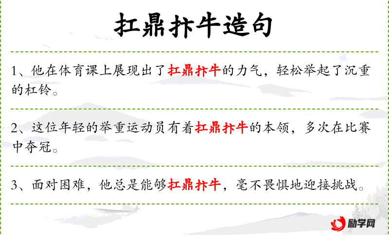 - 扛鼎扃牛:这是一个成语,形容力气极大,能够扛起鼎(古代的一种重器)和扃牛(古代的一种牛)。