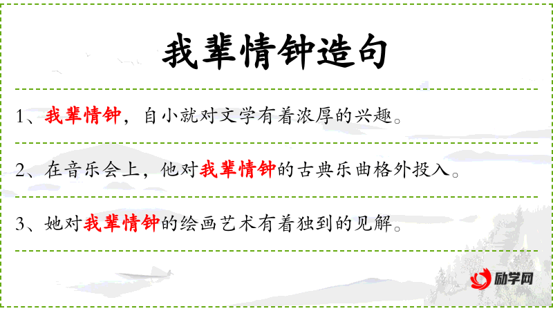 句子:“在音乐会上,他对我辈情钟的古典乐曲格外投入。”