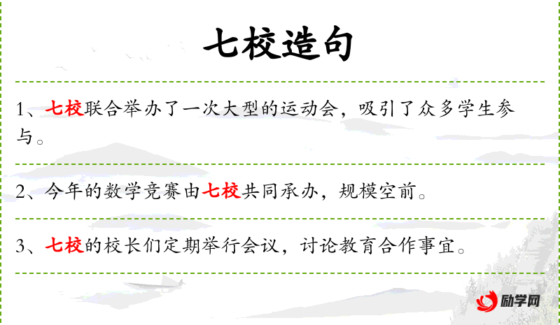 1. 【七校】 指汉代中垒﹑屯骑﹑步兵﹑越骑﹑长水﹑射声﹑虎贲七校尉。《汉书.刑法志》"至武帝平百粤,内增七校。"颜师古注引晋灼曰"《百官表》中垒﹑屯骑﹑步兵﹑越骑﹑长水﹑胡骑﹑射声﹑虎贲,凡八校尉→骑不常置,故此言七也。"一说中垒校尉掌北军垒门,不领兵,不在七校之列。见清沈钦韩《汉书疏证》◇泛称各军将领。