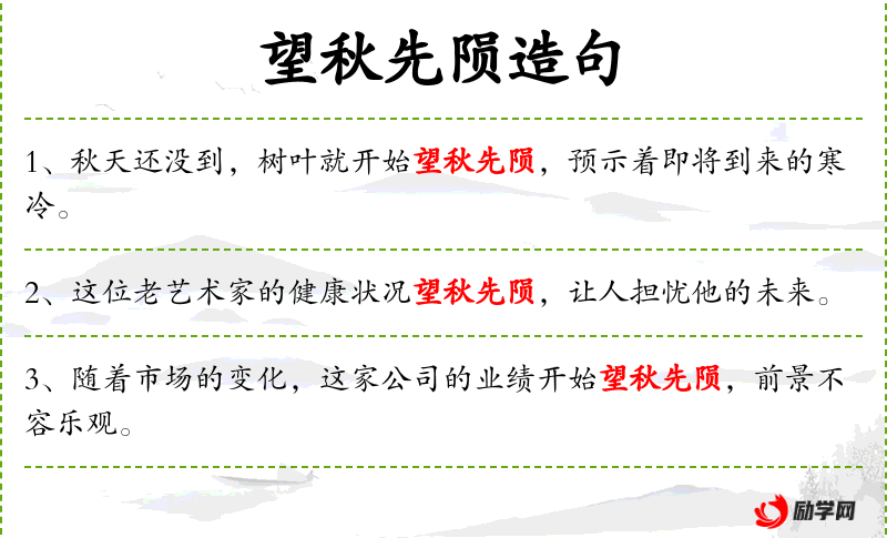 5. 【望秋先陨】 指草木将近秋天即败落凋零。也比喻未老先衰。