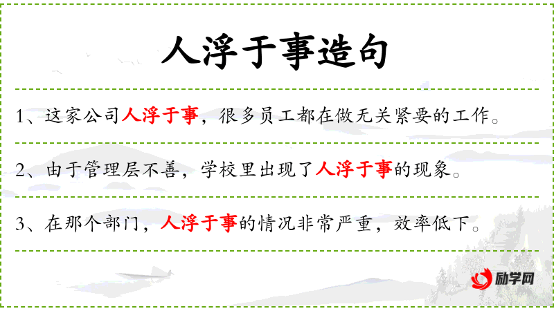 - 宾语:人浮于事的问题