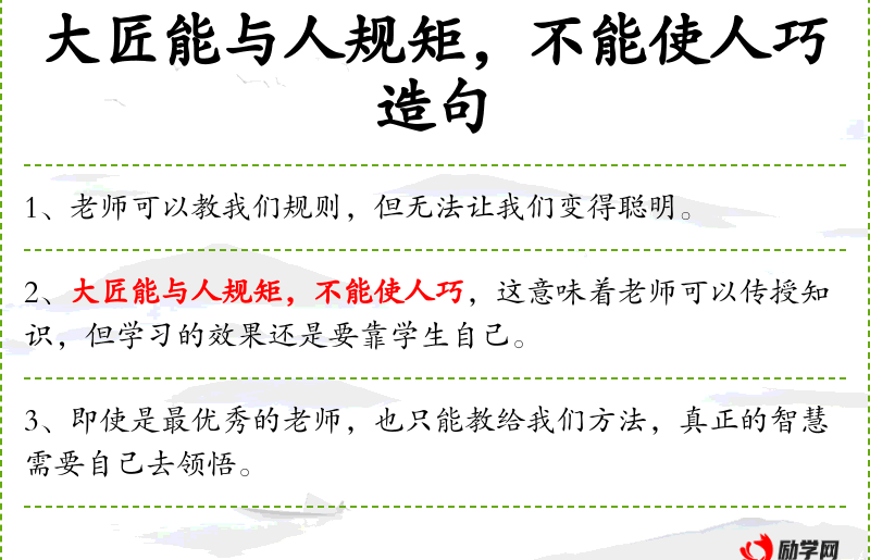 句子强调了教育过程中老师的作用有限,真正的成长和智慧需要个人的努力和领悟。这种观点在教育领域尤为重要,提醒学生不能完全依赖老师,而应该主动学*和发展自己的思考能力。