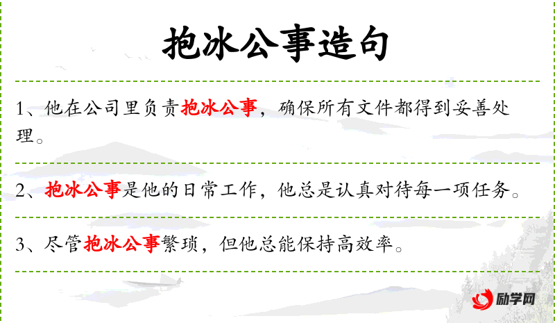 句子:“在政府部门,抱冰公事是确保政策执行的关键环节。”