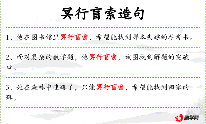 - 冥行盲索:这个成语反映了**文化中对困难情境的描述,强调在逆境中的努力和坚持。