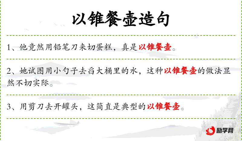 - 句子中提到的“筷子”是传统的餐具,而“以锥餐壶”是一个成语,形容行为古怪或不合常规。这反映了文化中对餐具使用的传统和成语的文化内涵。