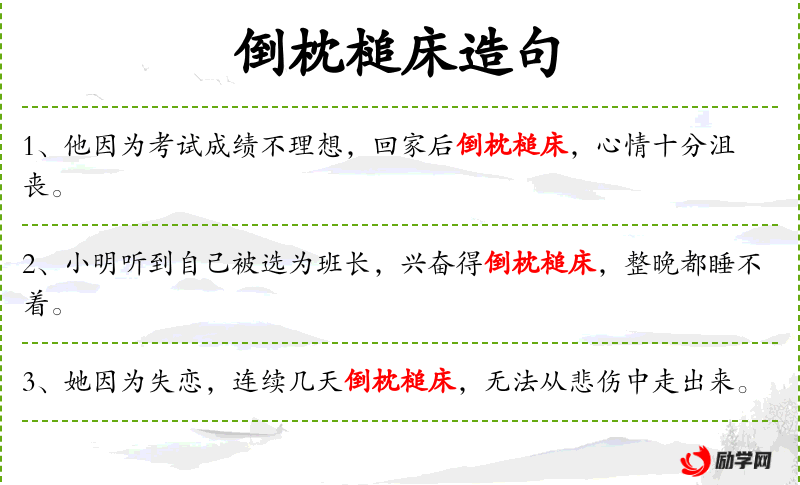 - 谓语:倒枕槌床,心情极度痛苦