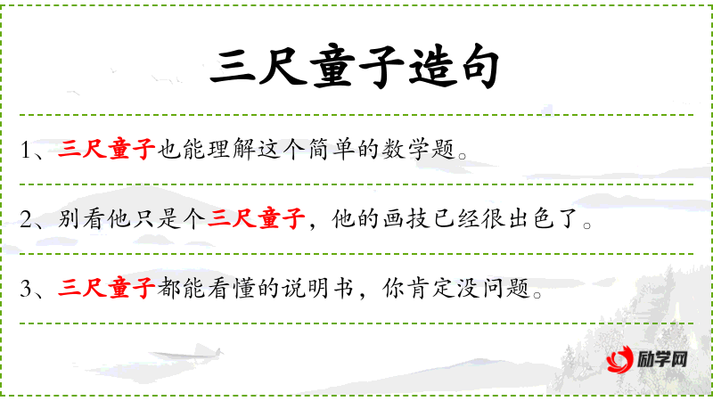 - 三尺童子:指的是年龄很小的孩子,通常指学龄前儿童。
