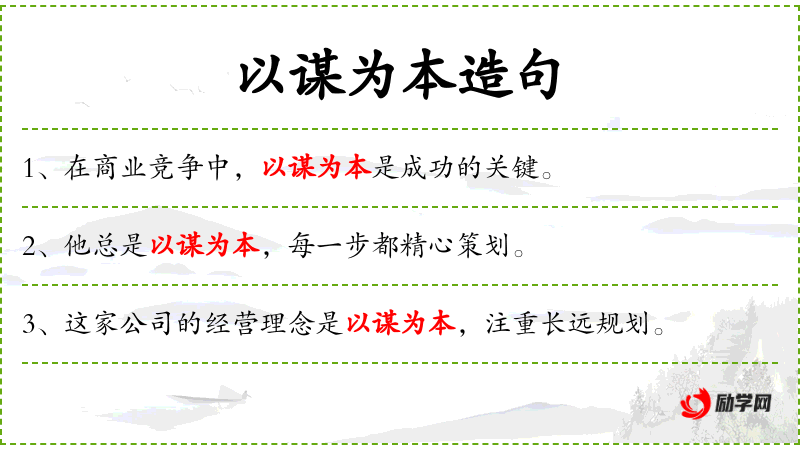 - 以谋为本:固定搭配,表示以策略或计划为核心。