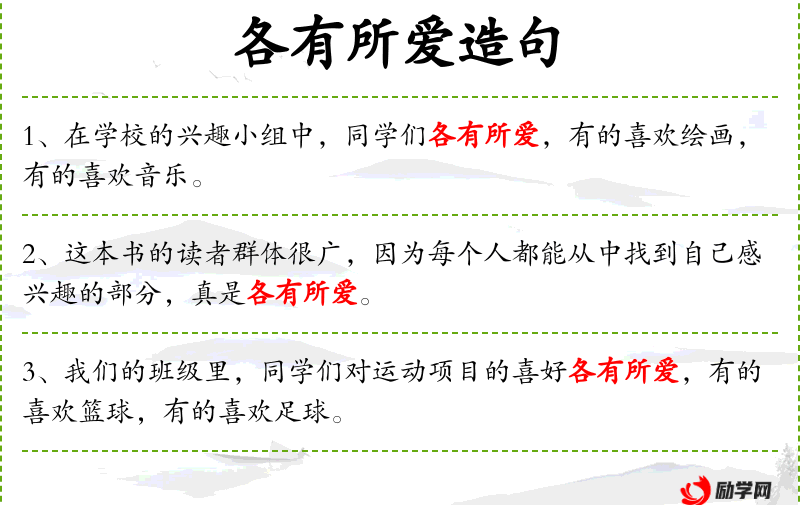句子:“我们的花园里种植了各种各样的花卉,每种花都有它的爱好者,真是各有所爱。”