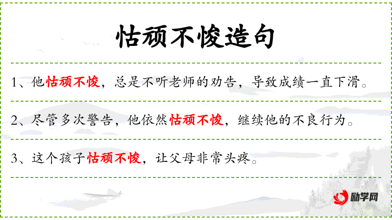 句子:“尽管家人多次劝说,他仍旧怙顽不悛,坚持自己的错误做法。”