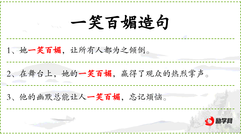 - 成语典故:“一笑百媚”源自**古代文学,形容女性笑容的迷人之处。