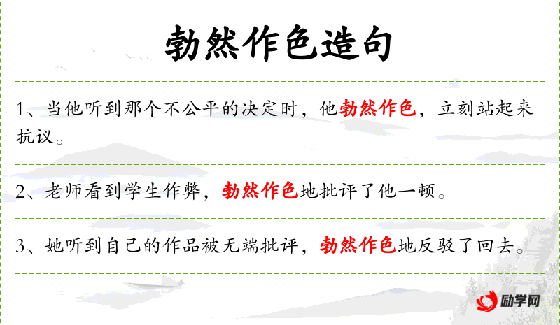 1. 【勃然作色】 作色:变脸色。因恼怒或惊怕而变脸色。