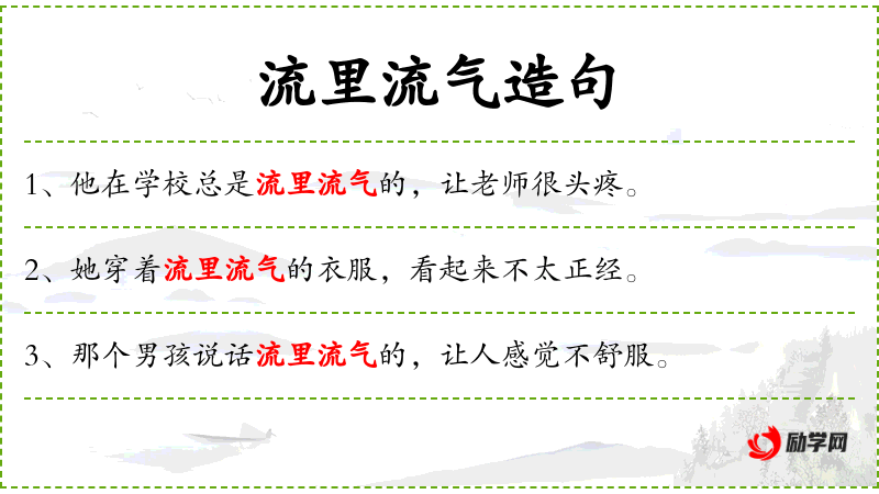 1. 【流里流气】 - 举止轻浮,品行不端。
