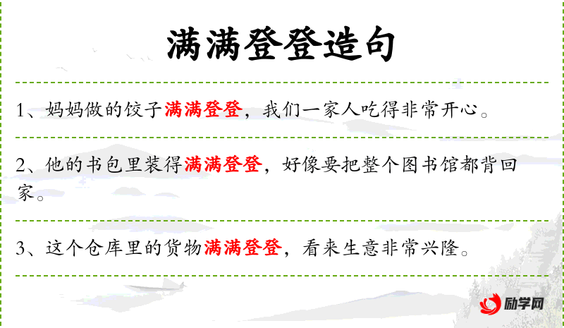3. 【满满登登】 - 极丰富的,富裕的,装得很多的。