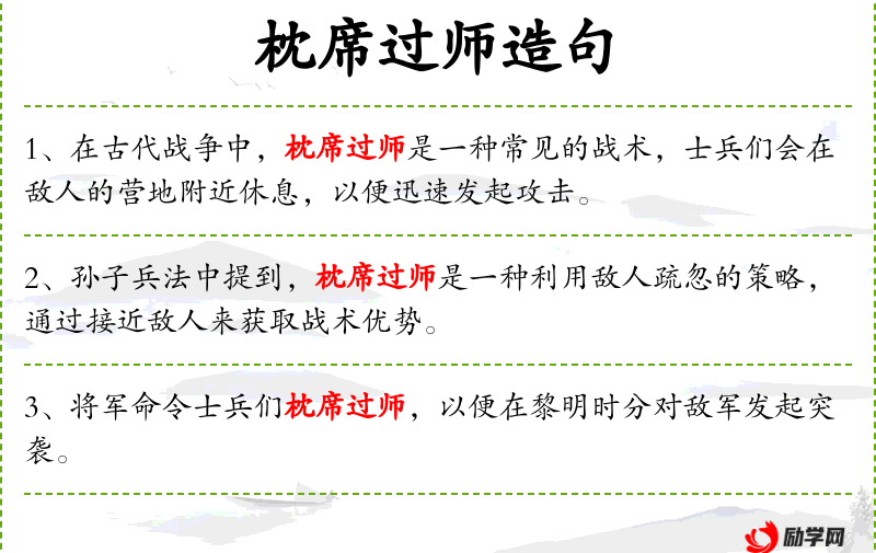 1. 【枕席过师】 师:军队。军队从桥上渡河,如在枕席上通过那样安稳而容易。