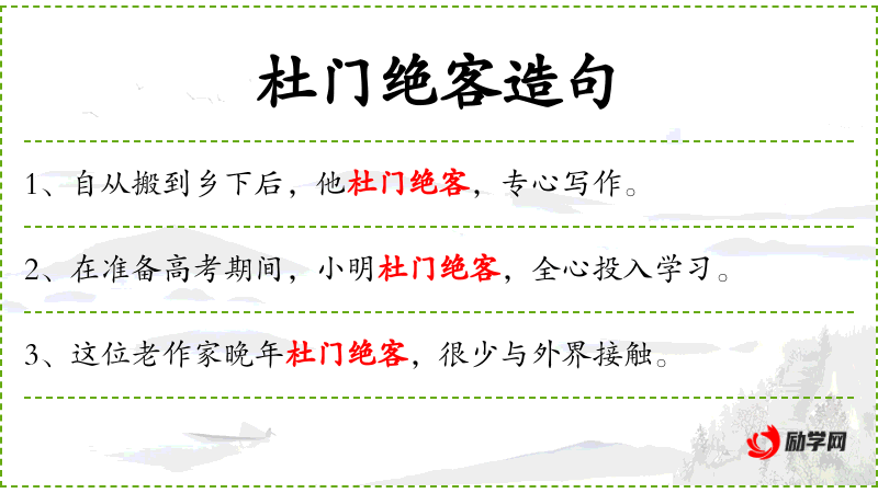 她决定杜门绝客一段时间,以便更好地反思自己的生活。