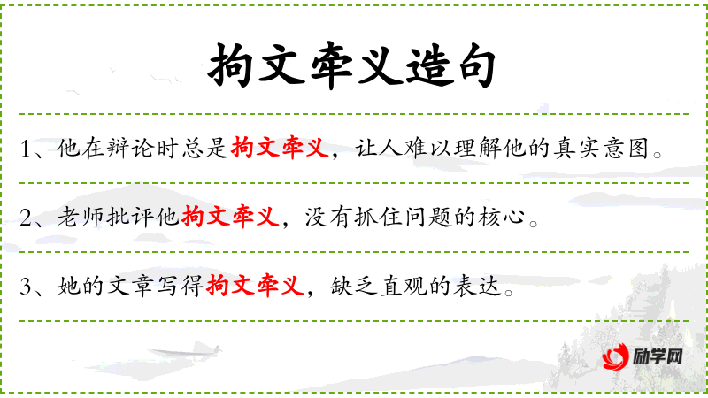 - 修饰语:“拘文牵义”
