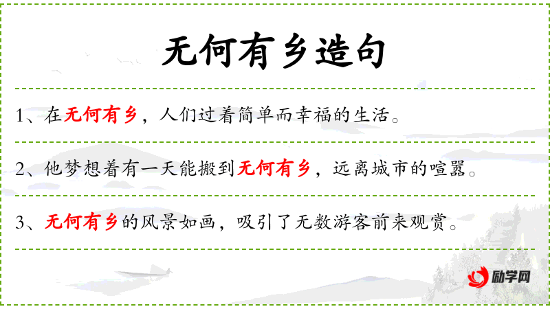句子:“在无何有乡,人们过着简单而幸福的生活。”