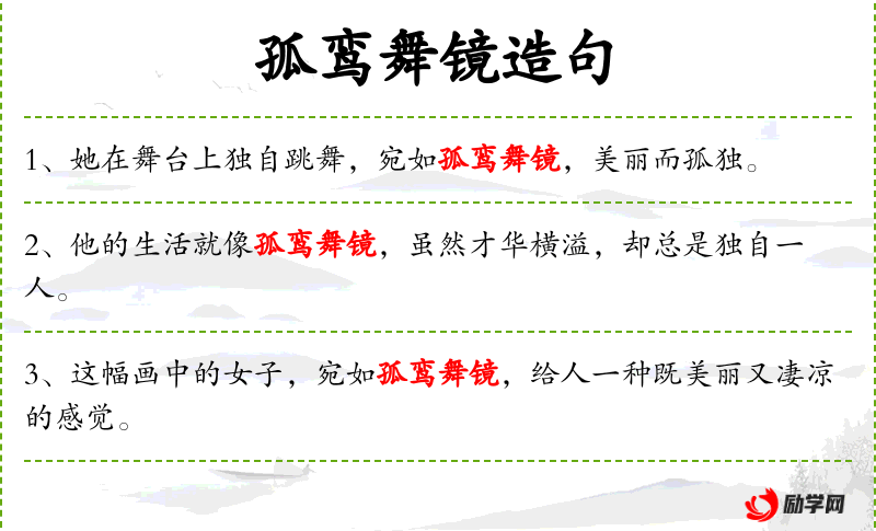 - 孤鸾舞镜:成语,比喻孤独而美丽的状态